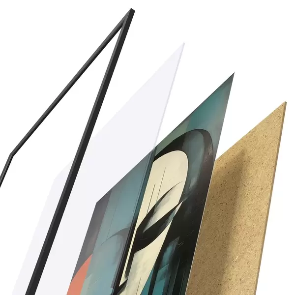 Plakatą sudaro rėmas, pleksiklas, atspausdintas vaizdas ir medžio drožlių plokštės pagrindas. Plakatą galima iš karto pakabinti ant sienos dėl kitoje pusėje esančių laikiklių.