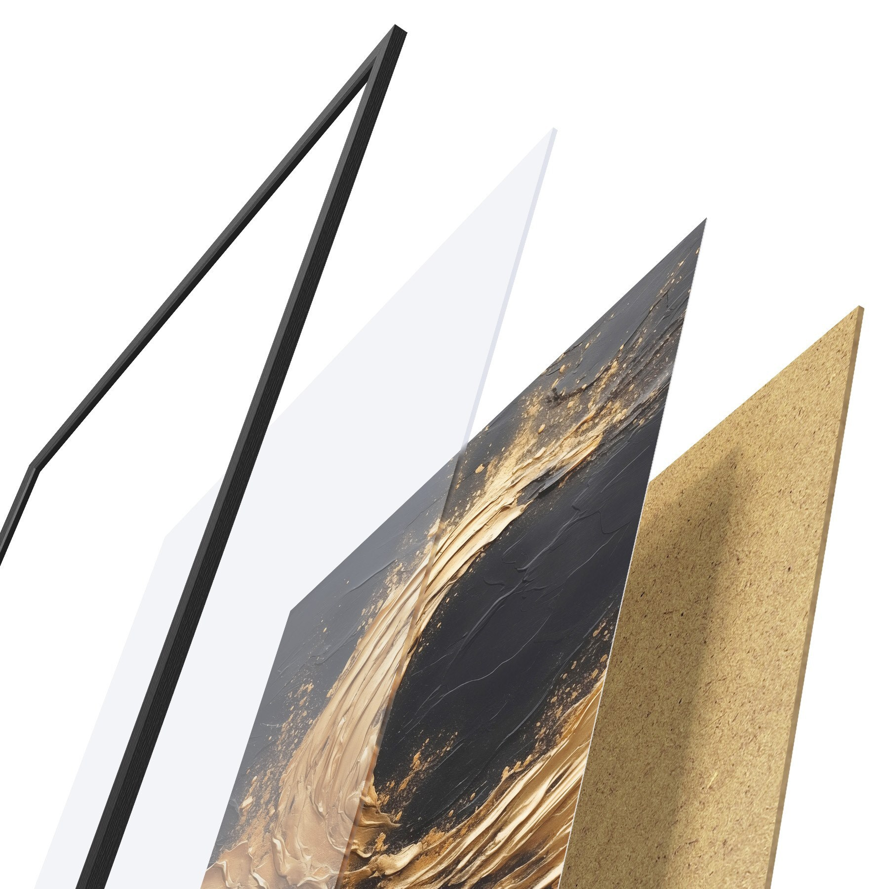 Plakatą sudaro rėmas, pleksiklas, atspausdintas vaizdas ir medžio drožlių plokštės pagrindas. Plakatą galima iš karto pakabinti ant sienos dėl kitoje pusėje esančių laikiklių.
