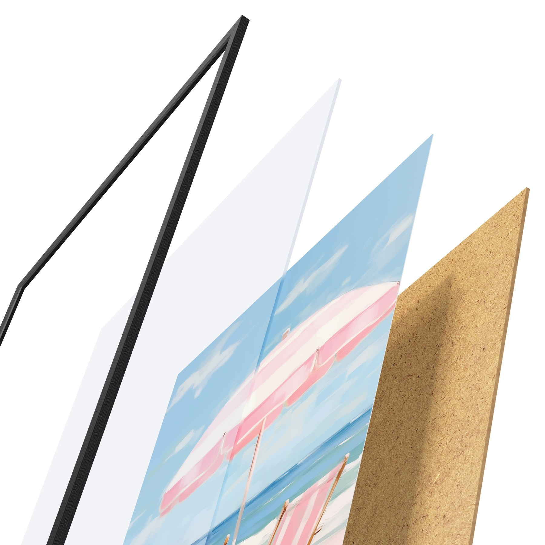 Plakatą sudaro rėmas, pleksiklas, atspausdintas vaizdas ir medžio drožlių plokštės pagrindas. Plakatą galima iš karto pakabinti ant sienos dėl kitoje pusėje esančių laikiklių.