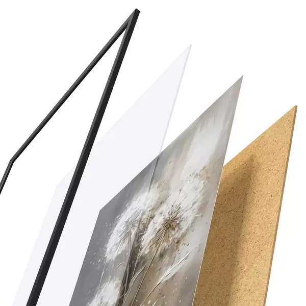 Plakatą sudaro rėmas, pleksiklas, atspausdintas vaizdas ir medžio drožlių plokštės pagrindas. Plakatą galima iš karto pakabinti ant sienos dėl kitoje pusėje esančių laikiklių.