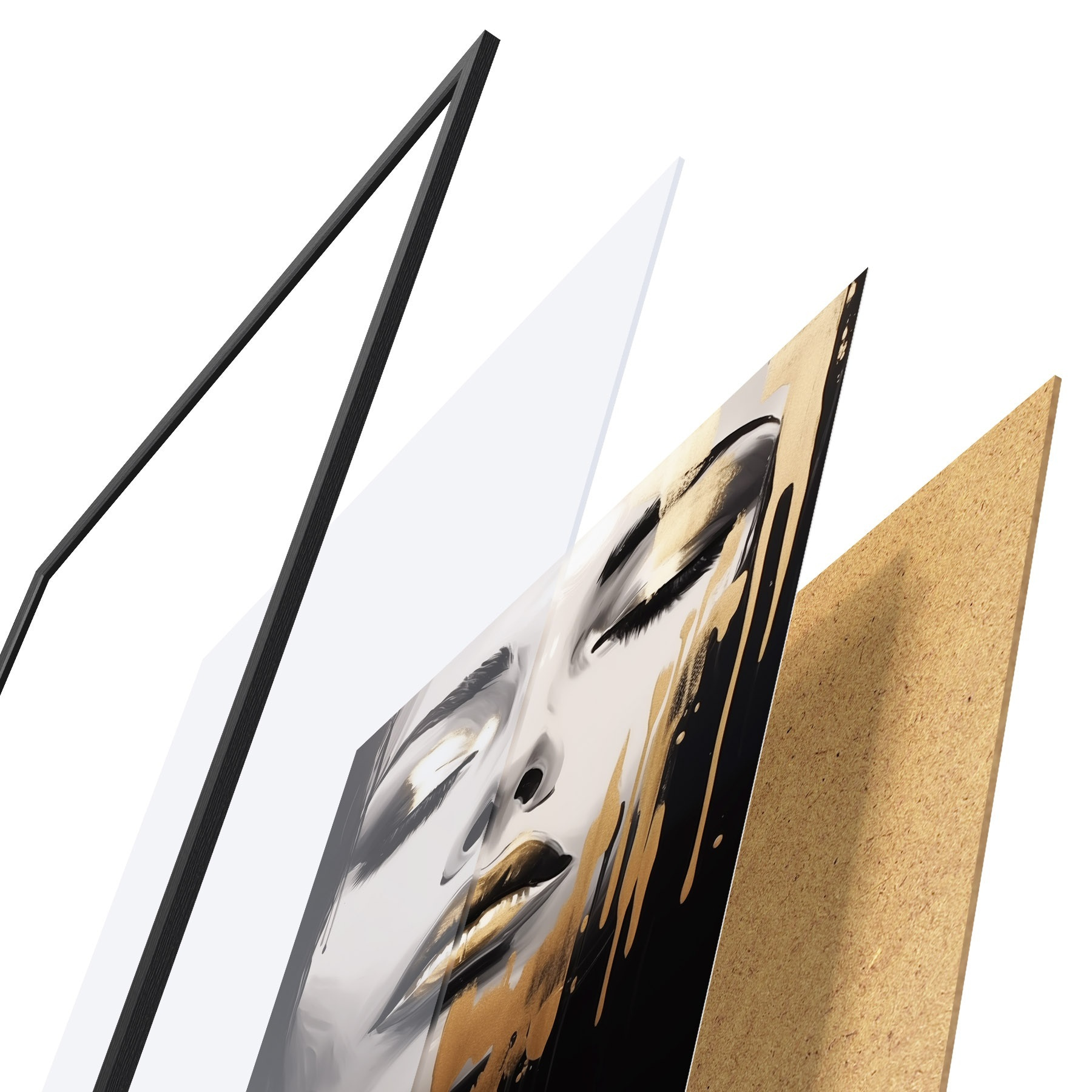 Plakatą sudaro rėmas, pleksiklas, atspausdintas vaizdas ir medžio drožlių plokštės pagrindas. Plakatą galima iš karto pakabinti ant sienos dėl kitoje pusėje esančių laikiklių.