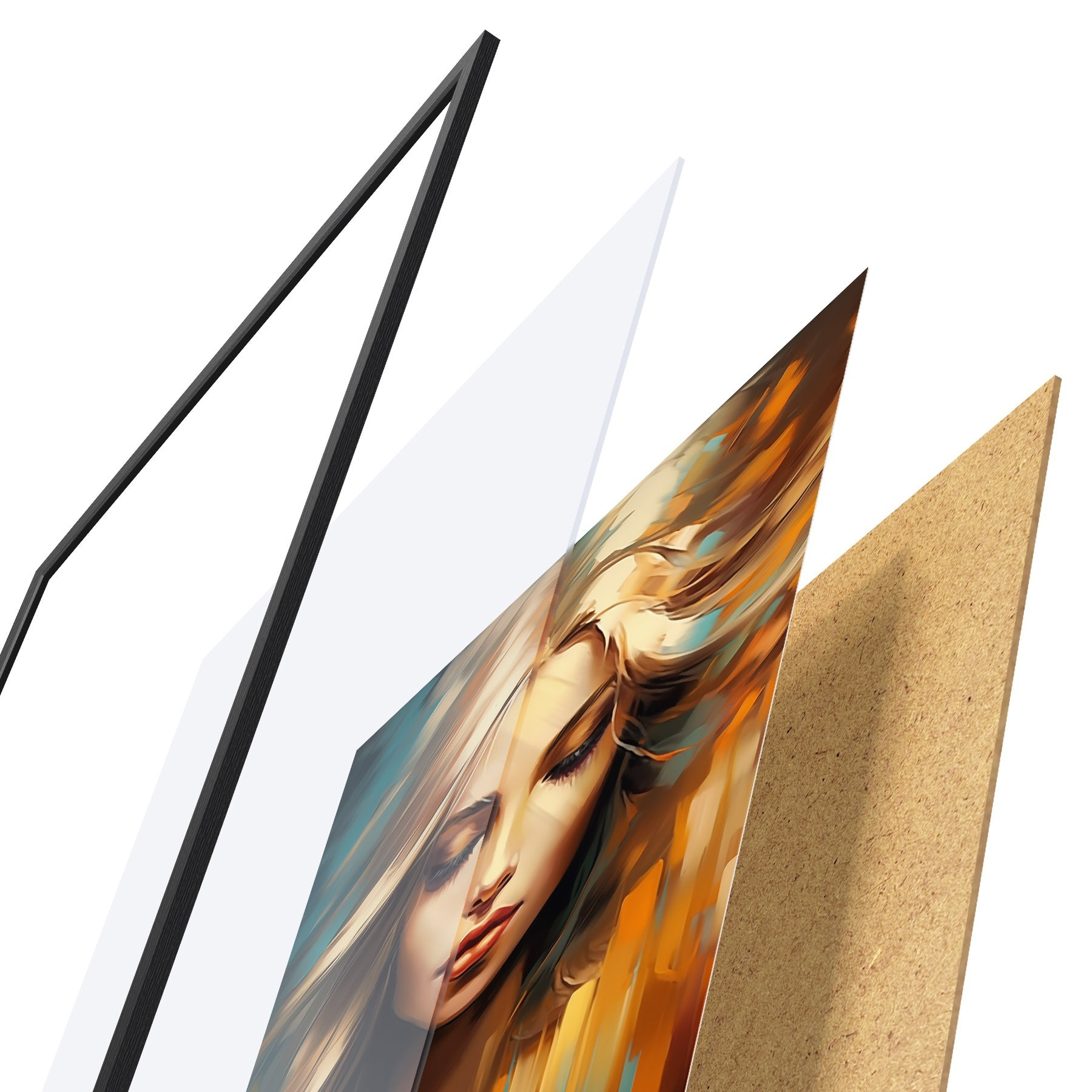 Plakatą sudaro rėmas, pleksiklas, atspausdintas vaizdas ir medžio drožlių plokštės pagrindas. Plakatą galima iš karto pakabinti ant sienos dėl kitoje pusėje esančių laikiklių.