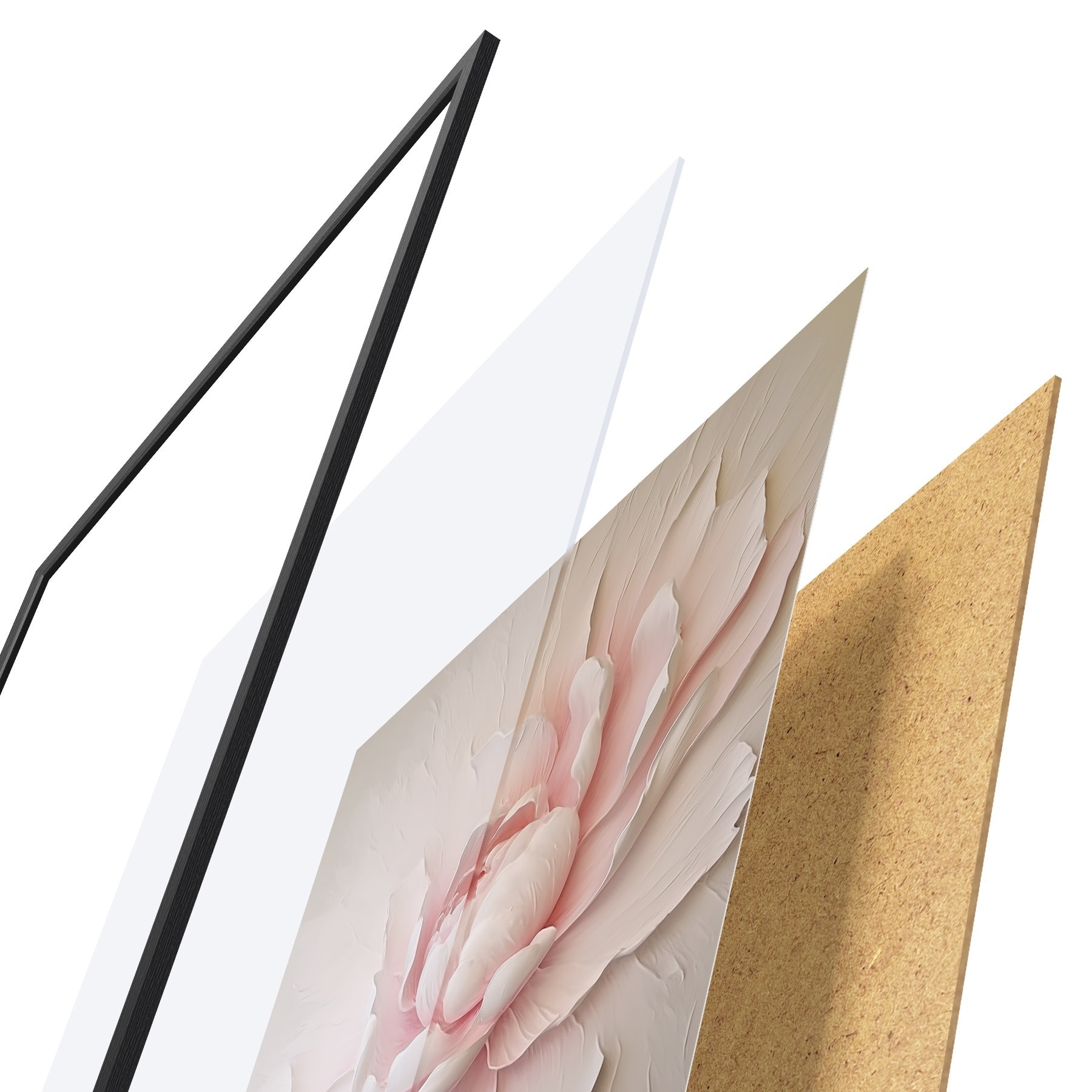 Plakatą sudaro rėmas, pleksiklas, atspausdintas vaizdas ir medžio drožlių plokštės pagrindas. Plakatą galima iš karto pakabinti ant sienos dėl kitoje pusėje esančių laikiklių.