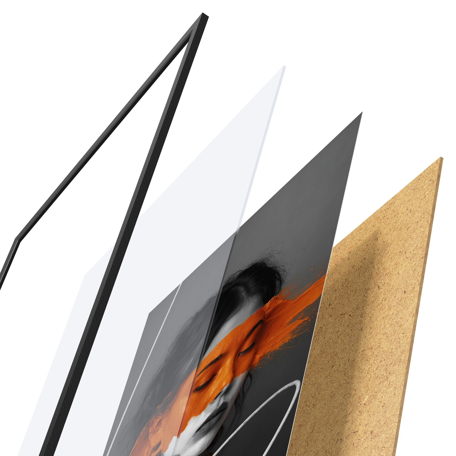 Plakatą sudaro rėmas, pleksiklas, atspausdintas vaizdas ir medžio drožlių plokštės pagrindas. Plakatą galima iš karto pakabinti ant sienos dėl kitoje pusėje esančių laikiklių.