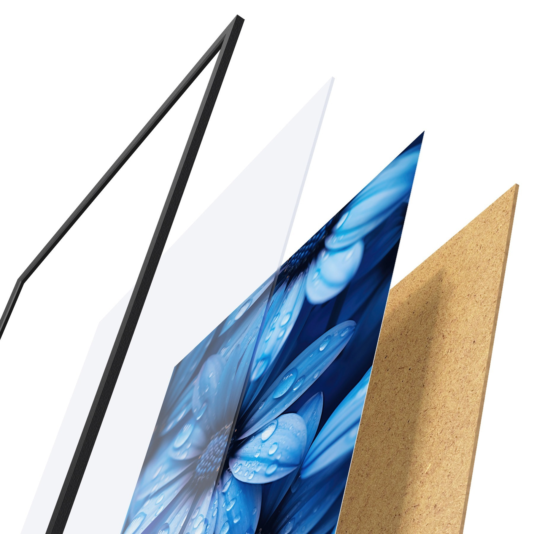 Plakatą sudaro rėmas, pleksiklas, atspausdintas vaizdas ir medžio drožlių plokštės pagrindas. Plakatą galima iš karto pakabinti ant sienos dėl kitoje pusėje esančių laikiklių.