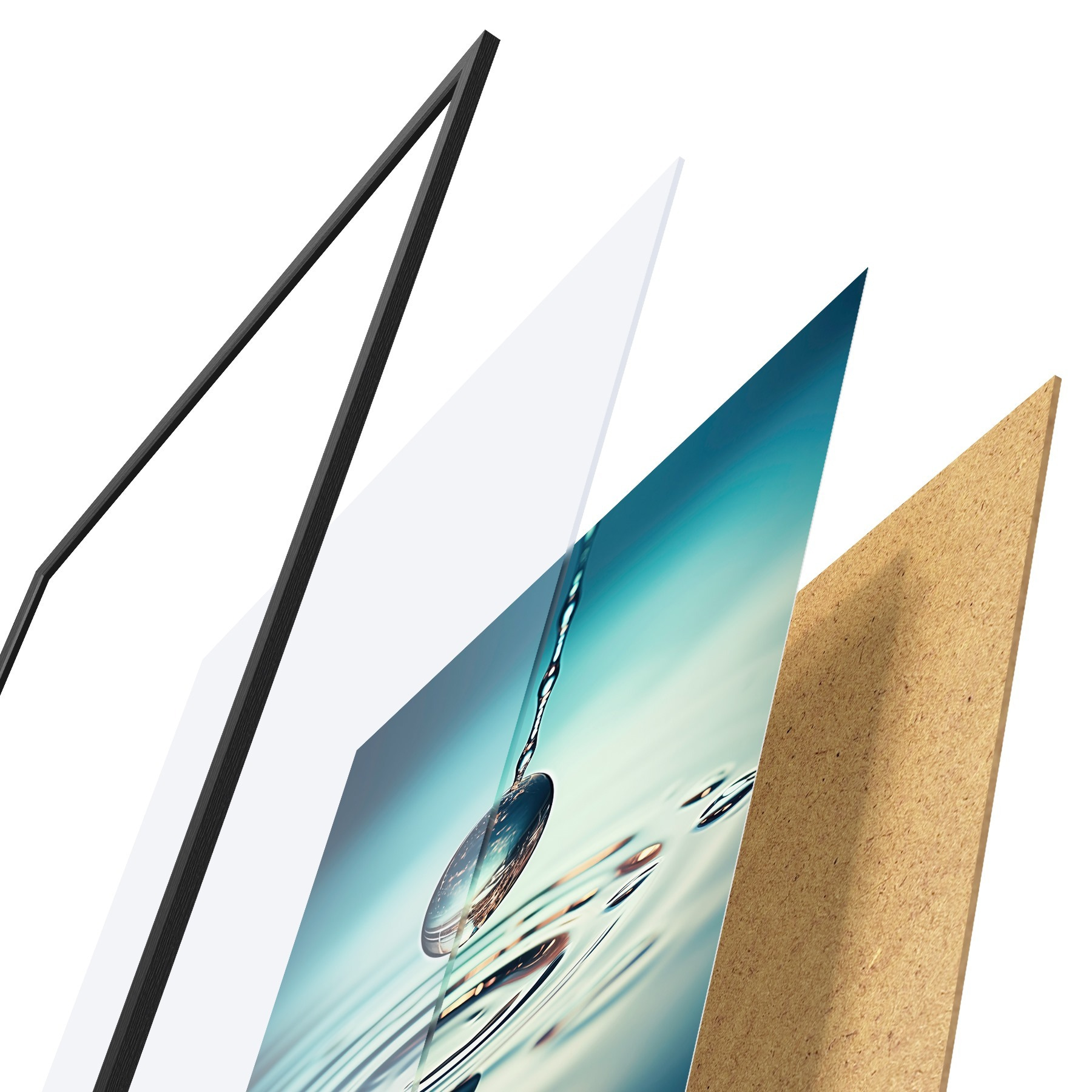 Plakatą sudaro rėmas, pleksiklas, atspausdintas vaizdas ir medžio drožlių plokštės pagrindas. Plakatą galima iš karto pakabinti ant sienos dėl kitoje pusėje esančių laikiklių.