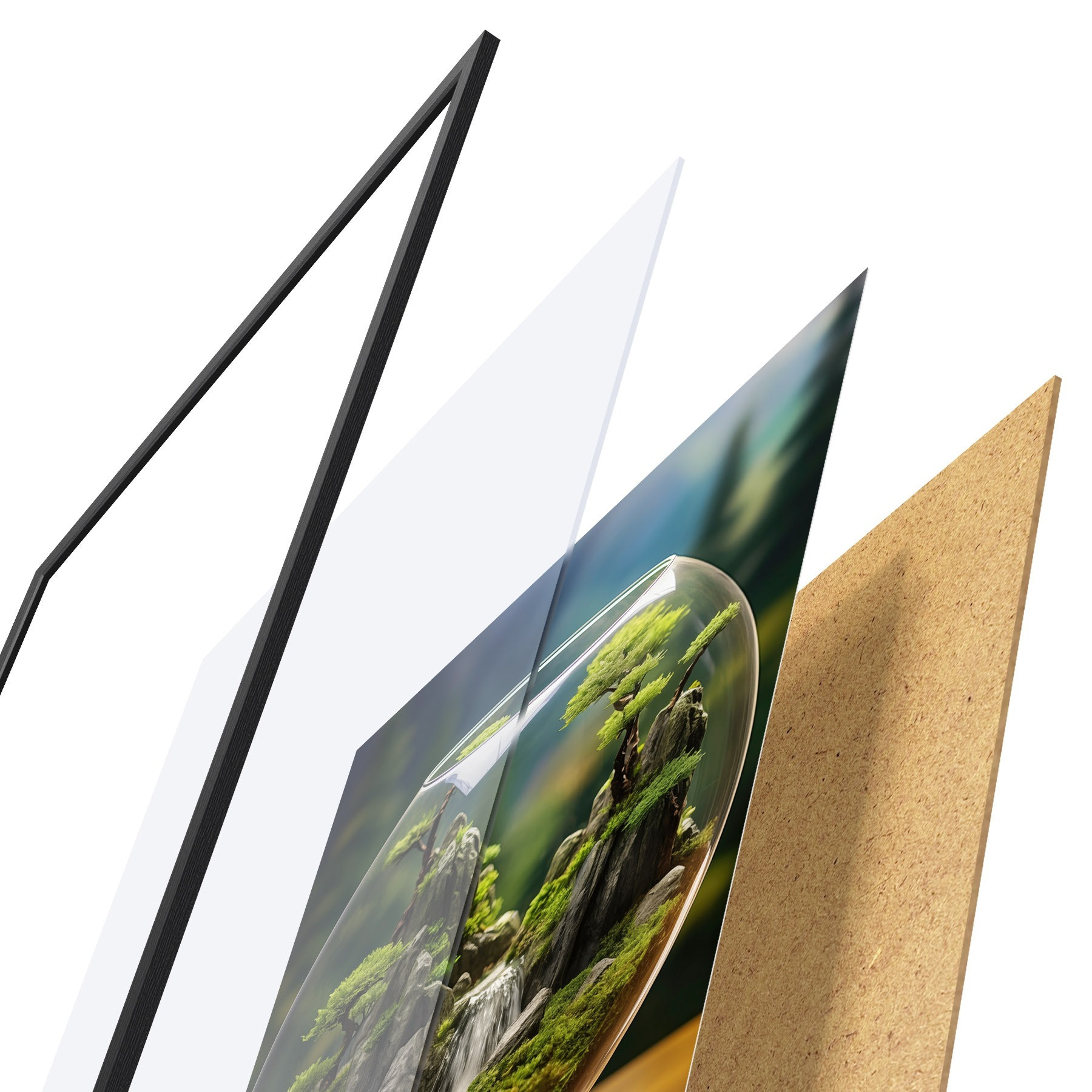 Plakatą sudaro rėmas, pleksiklas, atspausdintas vaizdas ir medžio drožlių plokštės pagrindas. Plakatą galima iš karto pakabinti ant sienos dėl kitoje pusėje esančių laikiklių.