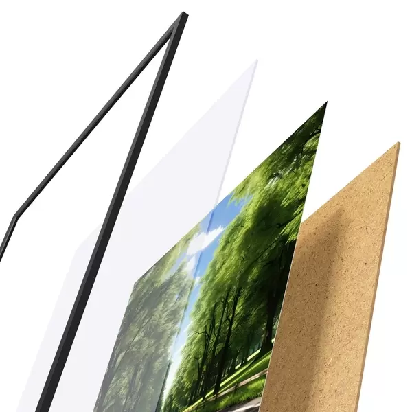 Plakatą sudaro rėmas, pleksiklas, atspausdintas vaizdas ir medžio drožlių plokštės pagrindas. Plakatą galima iš karto pakabinti ant sienos dėl kitoje pusėje esančių laikiklių.