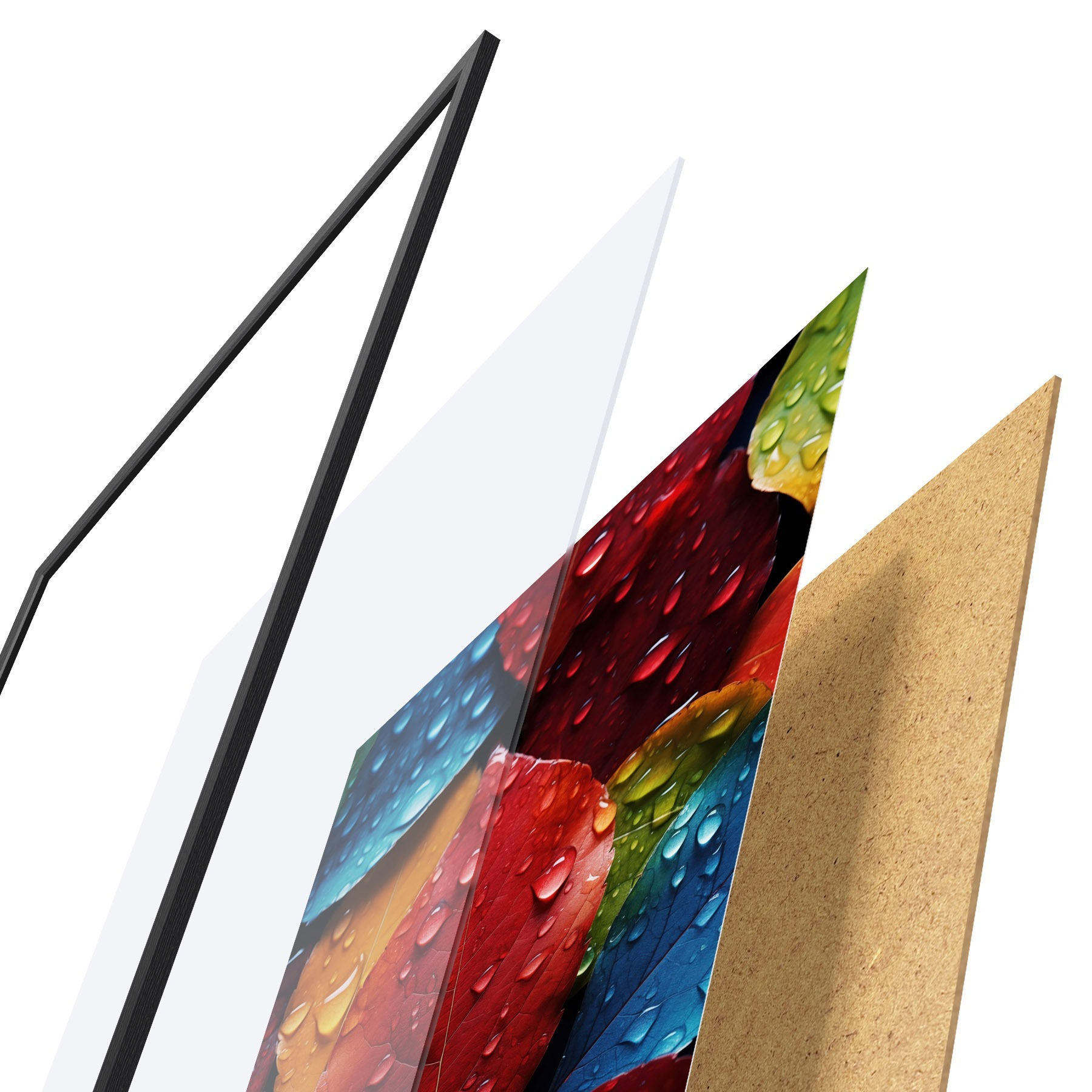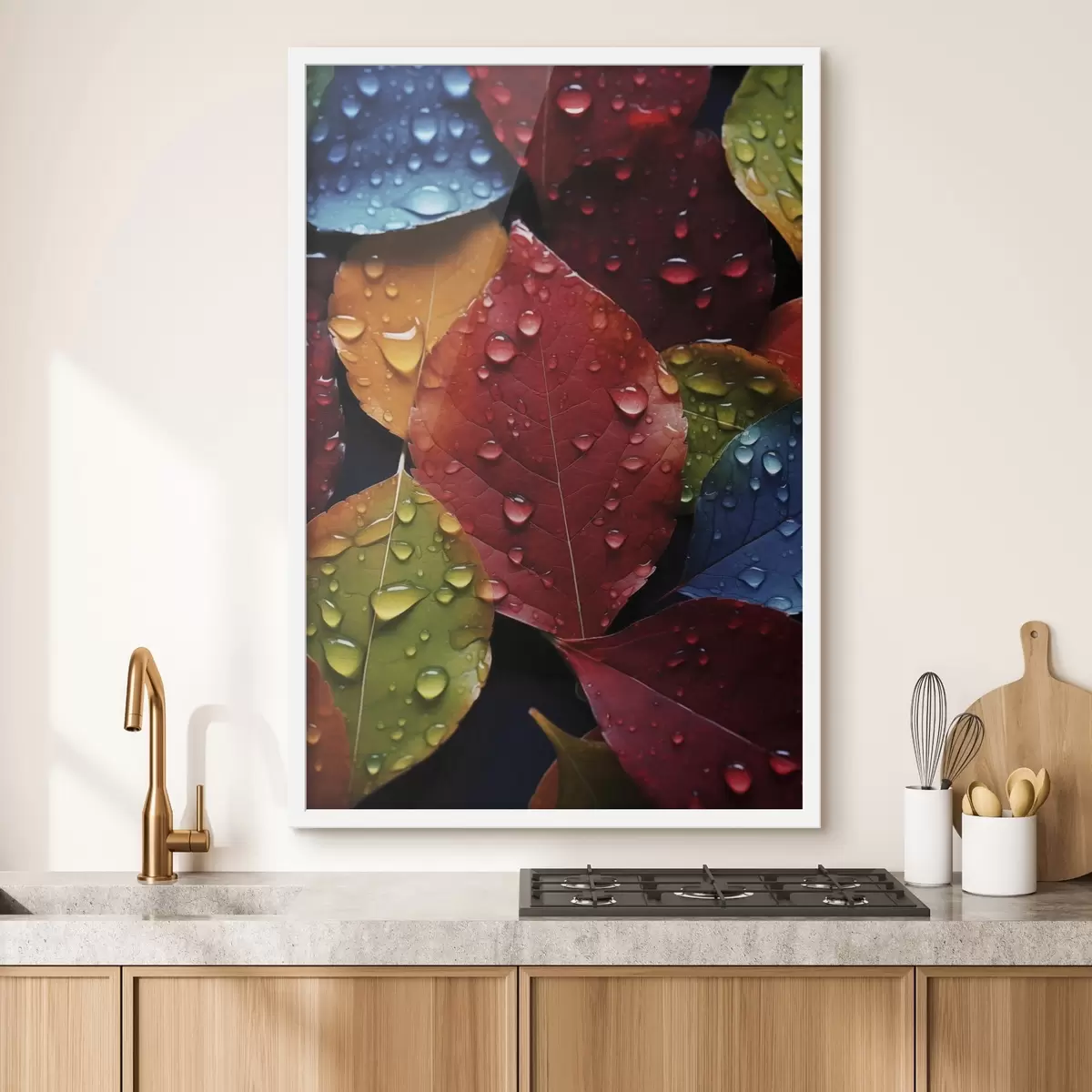 Plakatas Spalvingi lapai su vandens lašeliais f45516