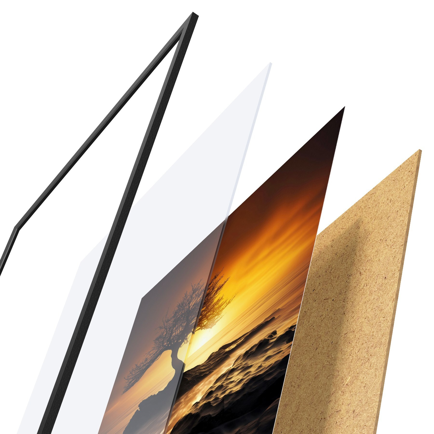 Plakatą sudaro rėmas, pleksiklas, atspausdintas vaizdas ir medžio drožlių plokštės pagrindas. Plakatą galima iš karto pakabinti ant sienos dėl kitoje pusėje esančių laikiklių.