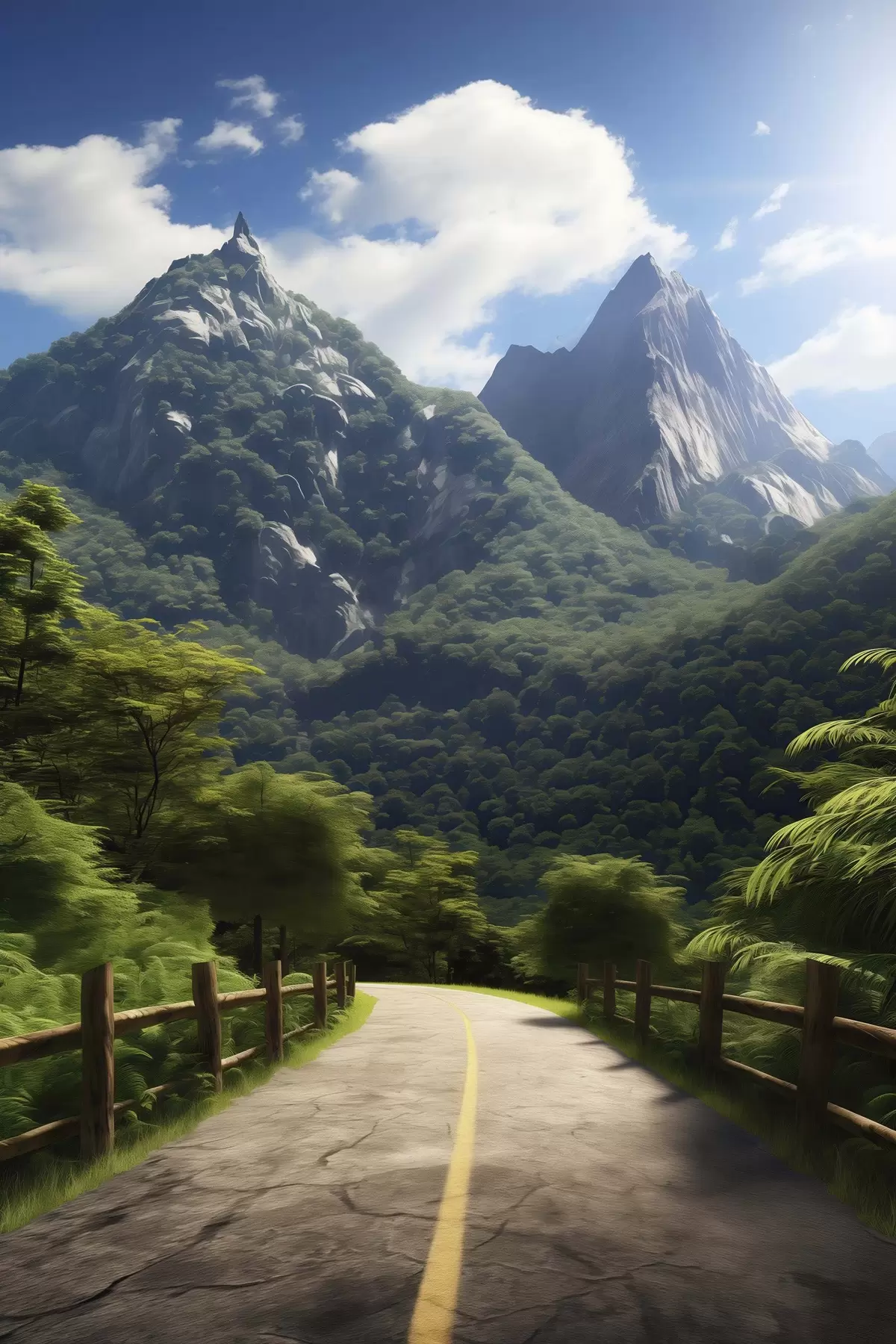 Plakatas Kalnų kelias tarp žalių medžių Ne f45525
