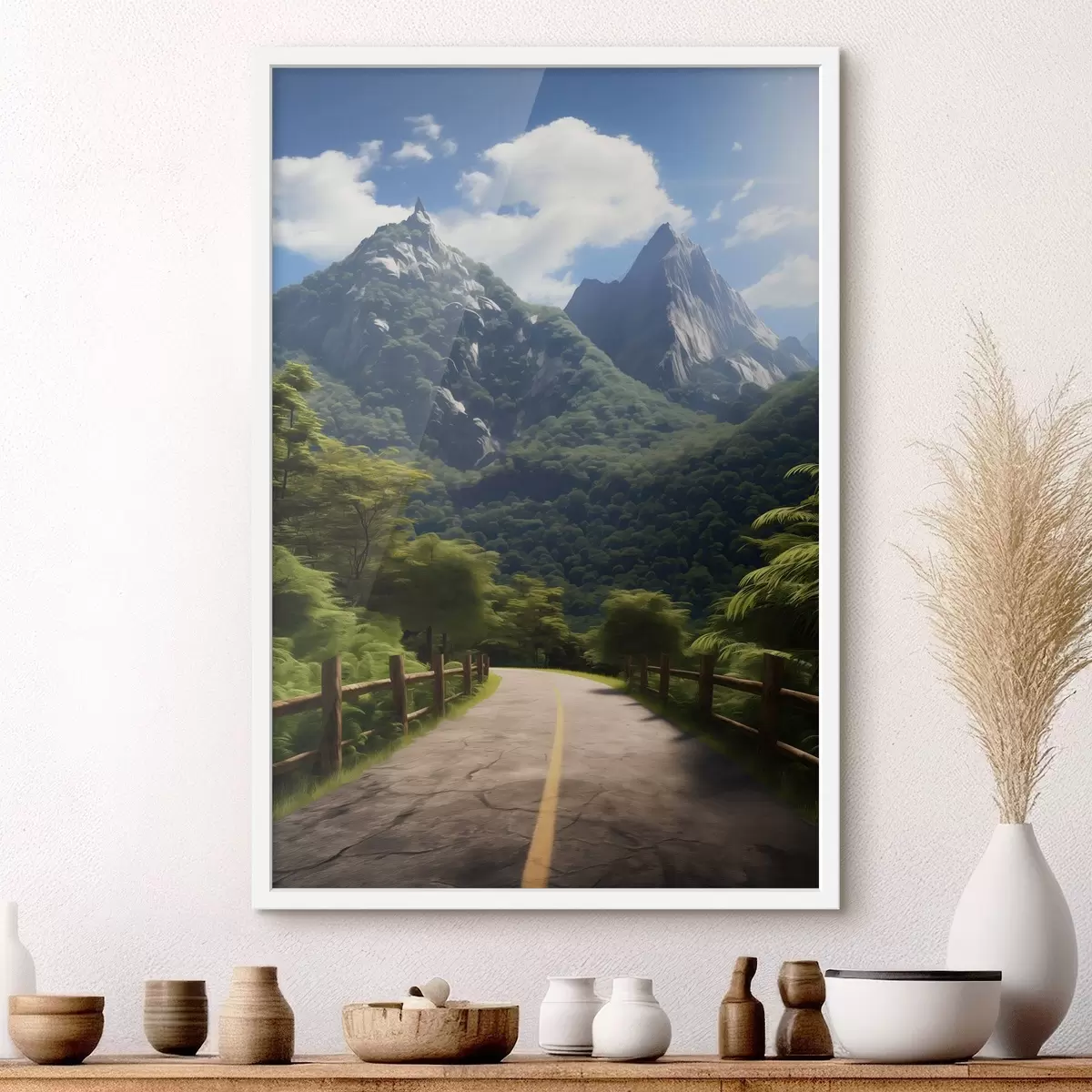 Plakatas Kalnų kelias tarp žalių medžių f45525