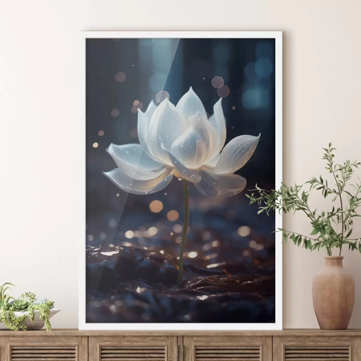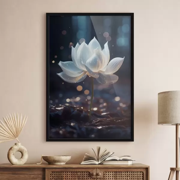 Plakatas Šviežias lotosas: gėlių kompozicija tamsiame fone f45530