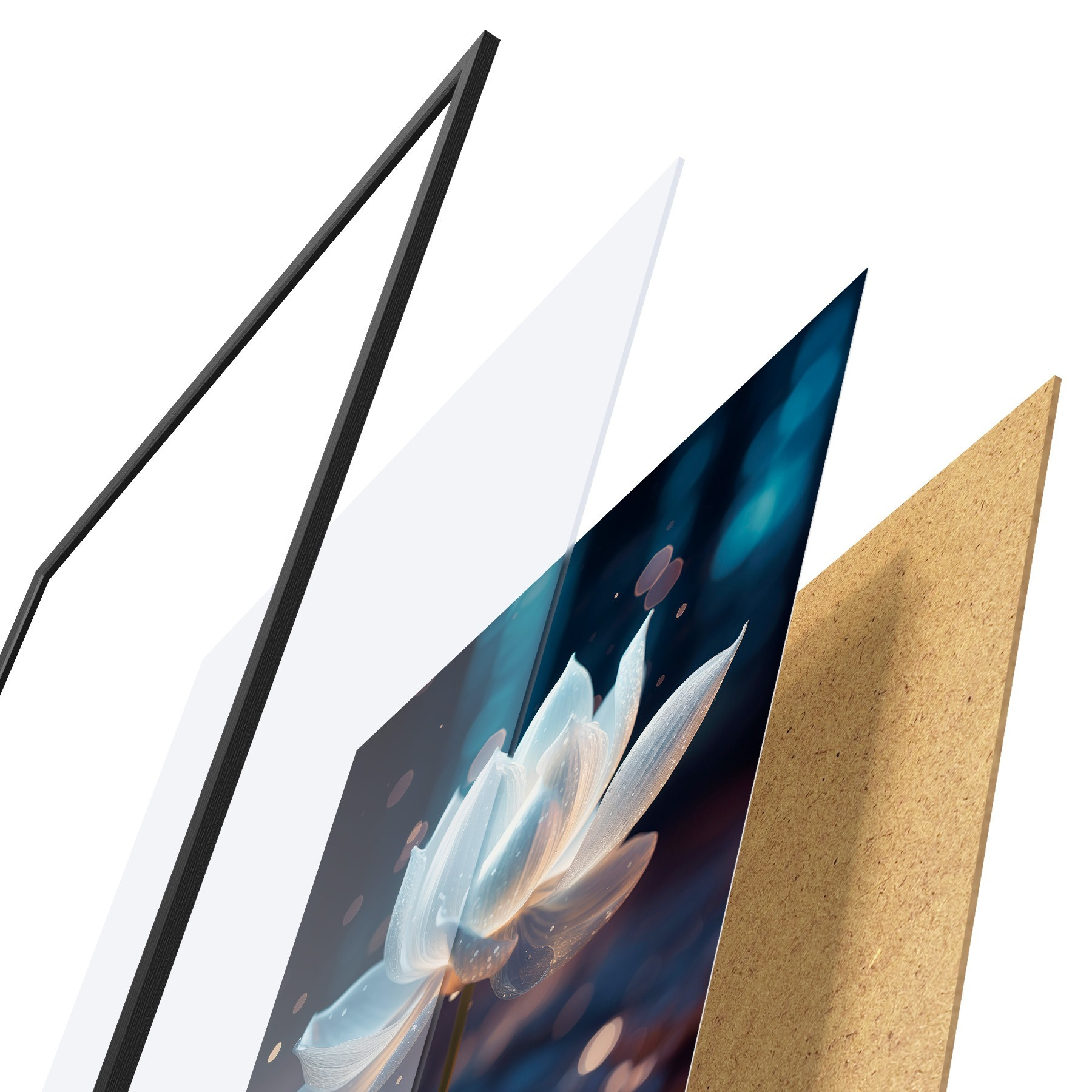 Plakatas Šviežias lotosas: gėlių kompozicija tamsiame fone Ne f45530