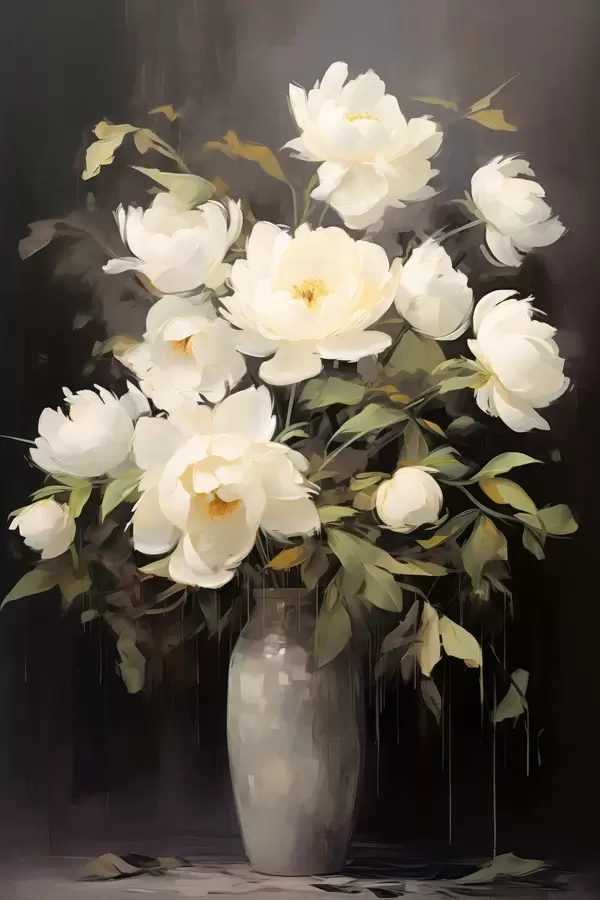 Plakatas Subtilūs bijūnai vazoje: tapybos stiliaus gėlių kompozicija f45532