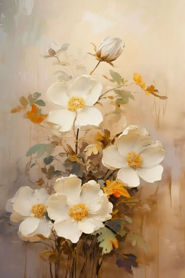 Plakatas Baltos gėlės: tapybiška pastelinių tonų kompozicija f45533