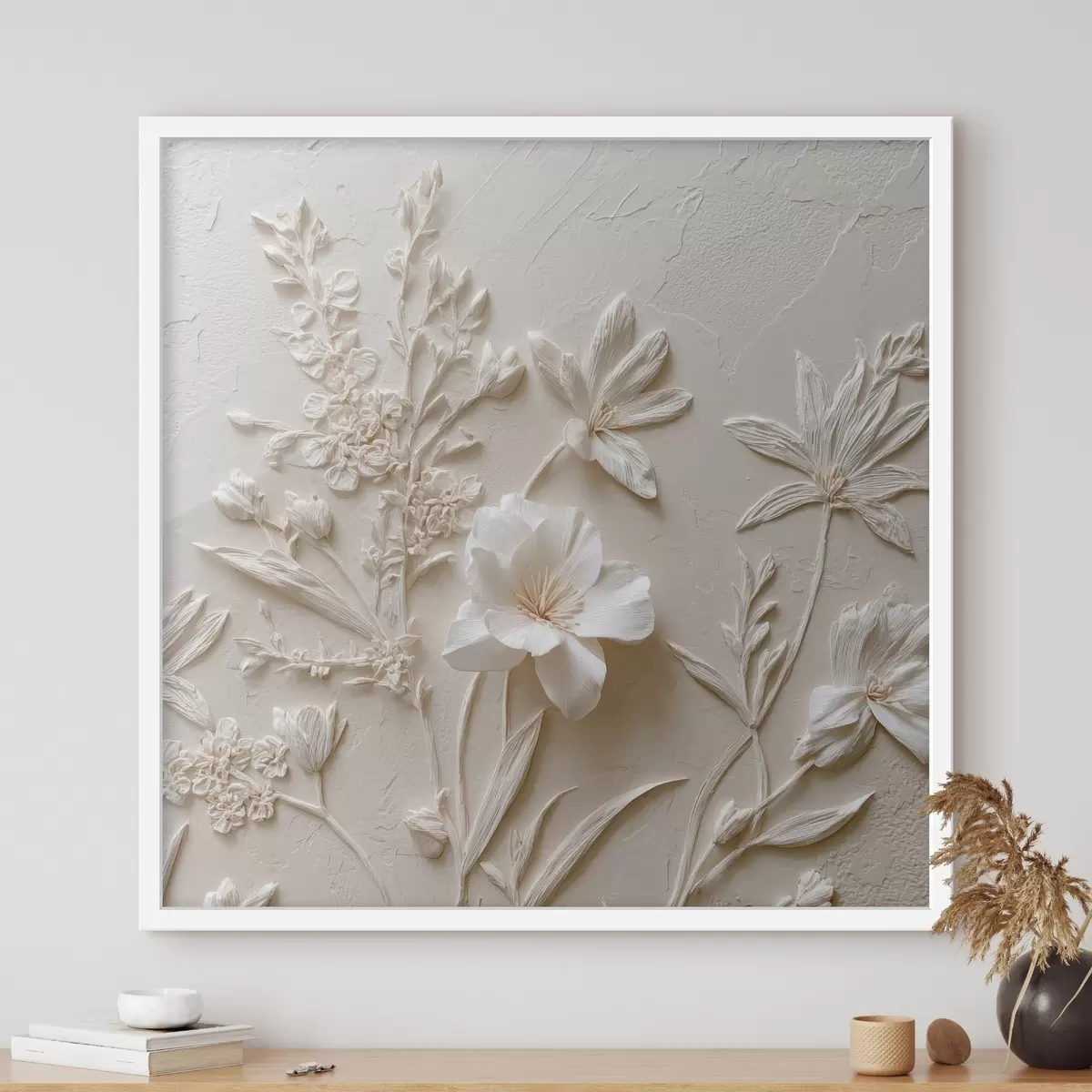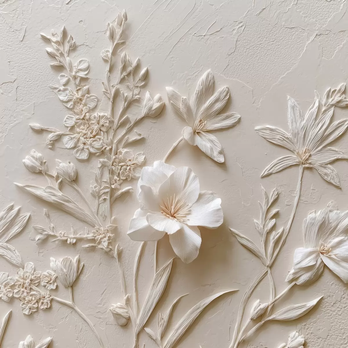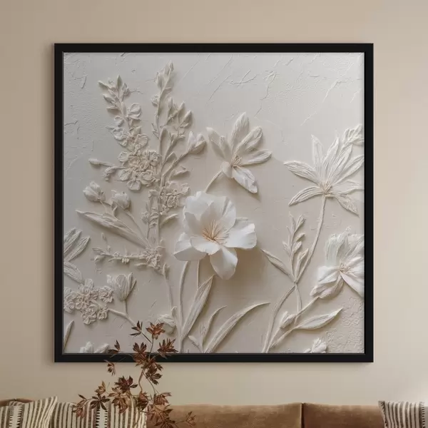 Plakatas Gėlių motyvas: bareljefinis stilius su augalais šviesiame fone Ne f45536