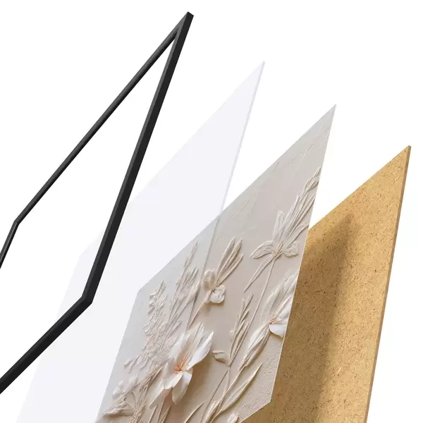 Plakatą sudaro rėmas, pleksiklas, atspausdintas vaizdas ir medžio drožlių plokštės pagrindas. Plakatą galima iš karto pakabinti ant sienos dėl kitoje pusėje esančių laikiklių.