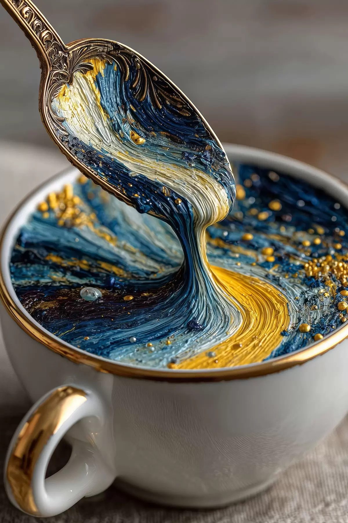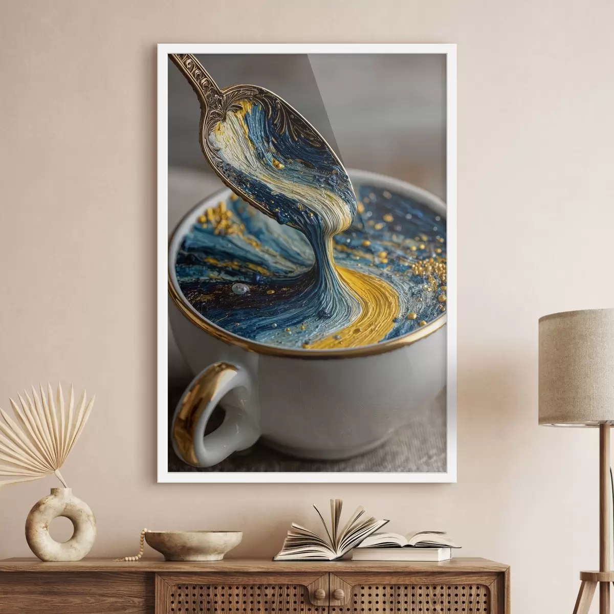 Plakatas Abstrakti kompozicija: Van Gogo stiliaus mišrios spalvos puodelyje f45545