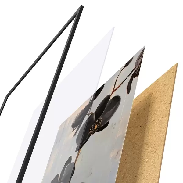 Plakatą sudaro rėmas, pleksiklas, atspausdintas vaizdas ir medžio drožlių plokštės pagrindas. Plakatą galima iš karto pakabinti ant sienos dėl kitoje pusėje esančių laikiklių.