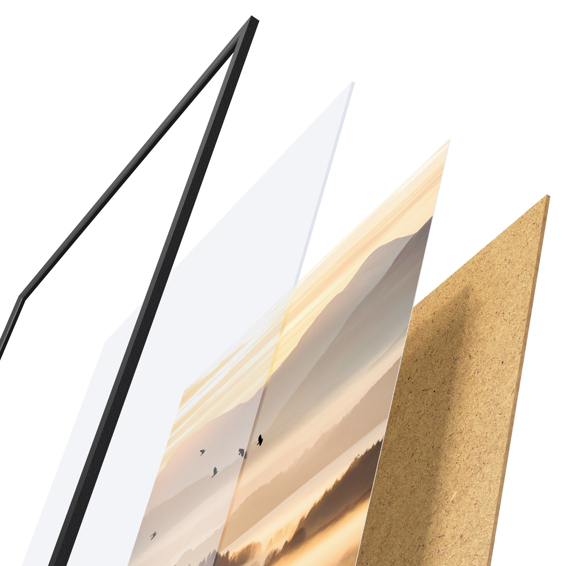 Plakatą sudaro rėmas, pleksiklas, atspausdintas vaizdas ir medžio drožlių plokštės pagrindas. Plakatą galima iš karto pakabinti ant sienos dėl kitoje pusėje esančių laikiklių.