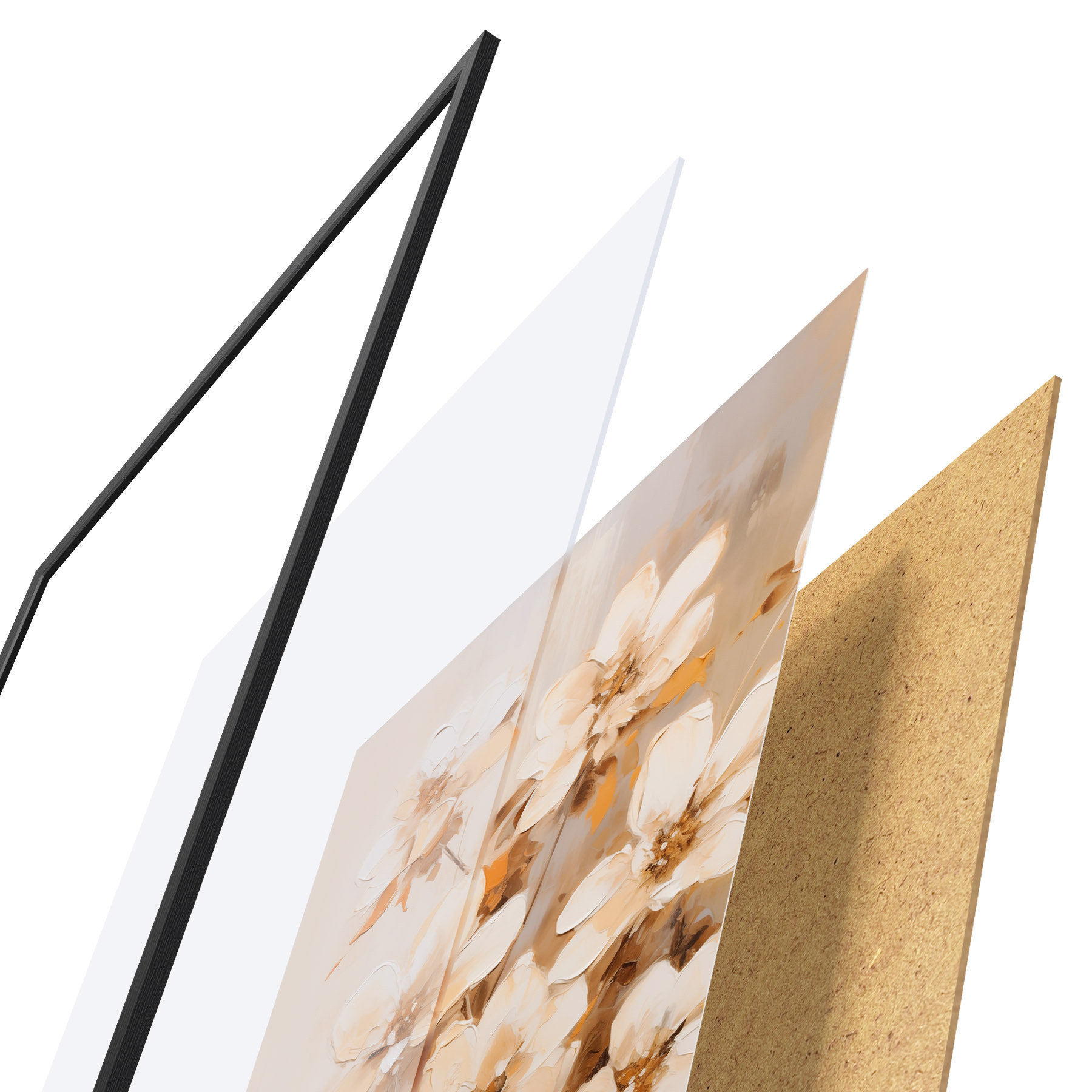 Plakatą sudaro rėmas, pleksiklas, atspausdintas vaizdas ir medžio drožlių plokštės pagrindas. Plakatą galima iš karto pakabinti ant sienos dėl kitoje pusėje esančių laikiklių.
