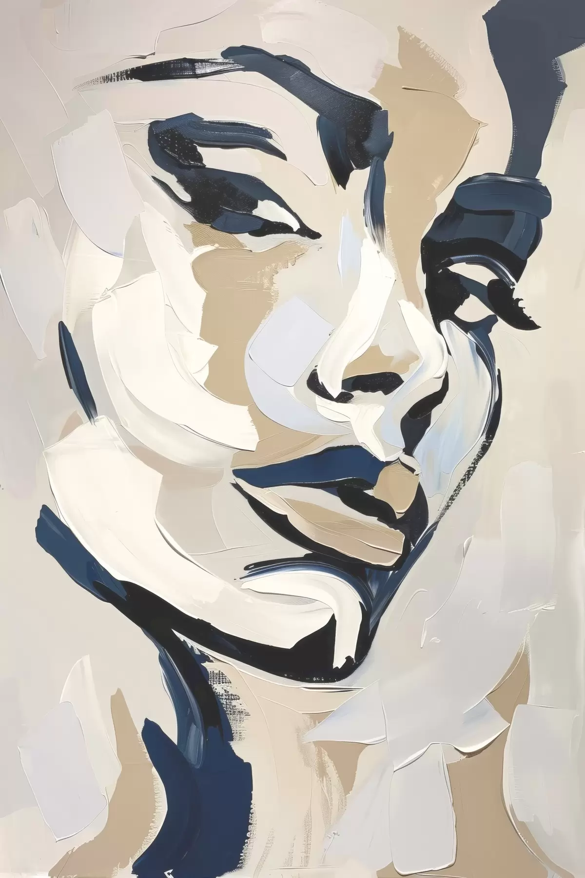 Plakatas Abstraktus moters portretas su imituotais teptuko potėpiais f45593