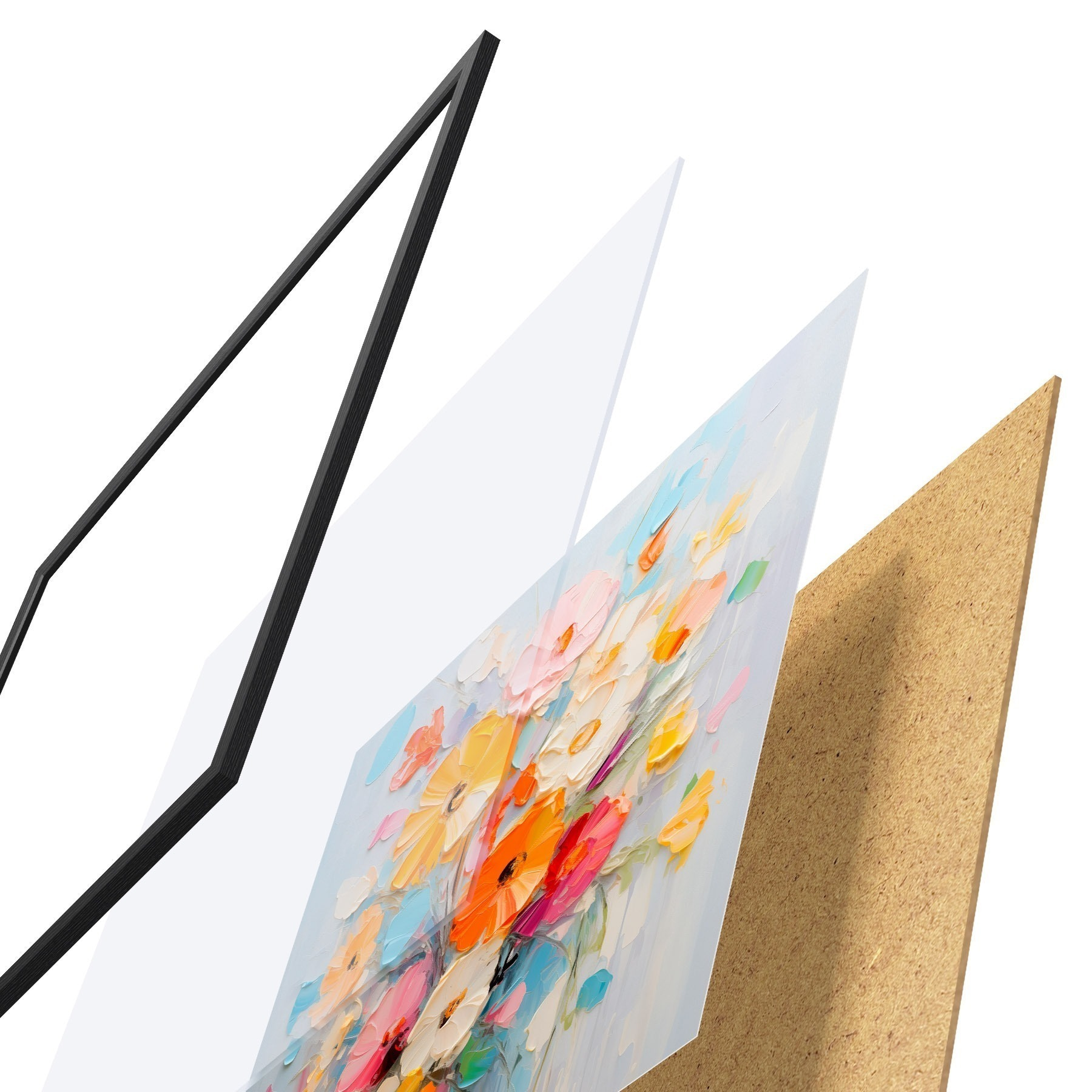 Plakatą sudaro rėmas, pleksiklas, atspausdintas vaizdas ir medžio drožlių plokštės pagrindas. Plakatą galima iš karto pakabinti ant sienos dėl kitoje pusėje esančių laikiklių.