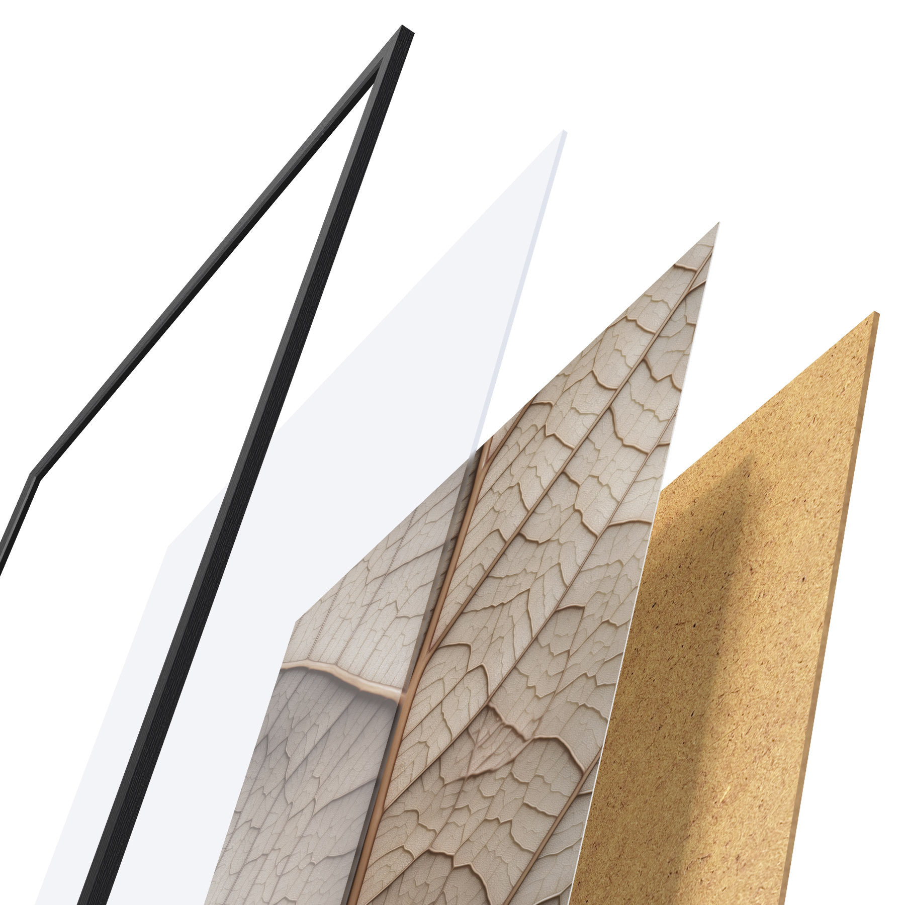 Plakatą sudaro rėmas, pleksiklas, atspausdintas vaizdas ir medžio drožlių plokštės pagrindas. Plakatą galima iš karto pakabinti ant sienos dėl kitoje pusėje esančių laikiklių.