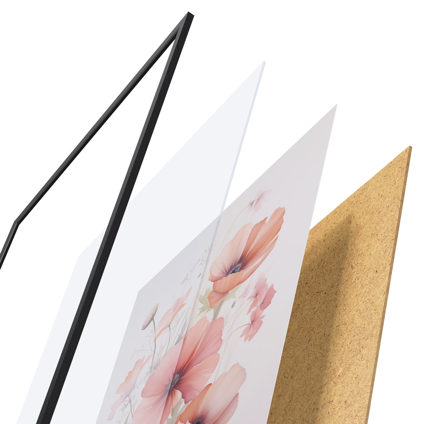 Plakatą sudaro rėmas, pleksiklas, atspausdintas vaizdas ir medžio drožlių plokštės pagrindas. Plakatą galima iš karto pakabinti ant sienos dėl kitoje pusėje esančių laikiklių.