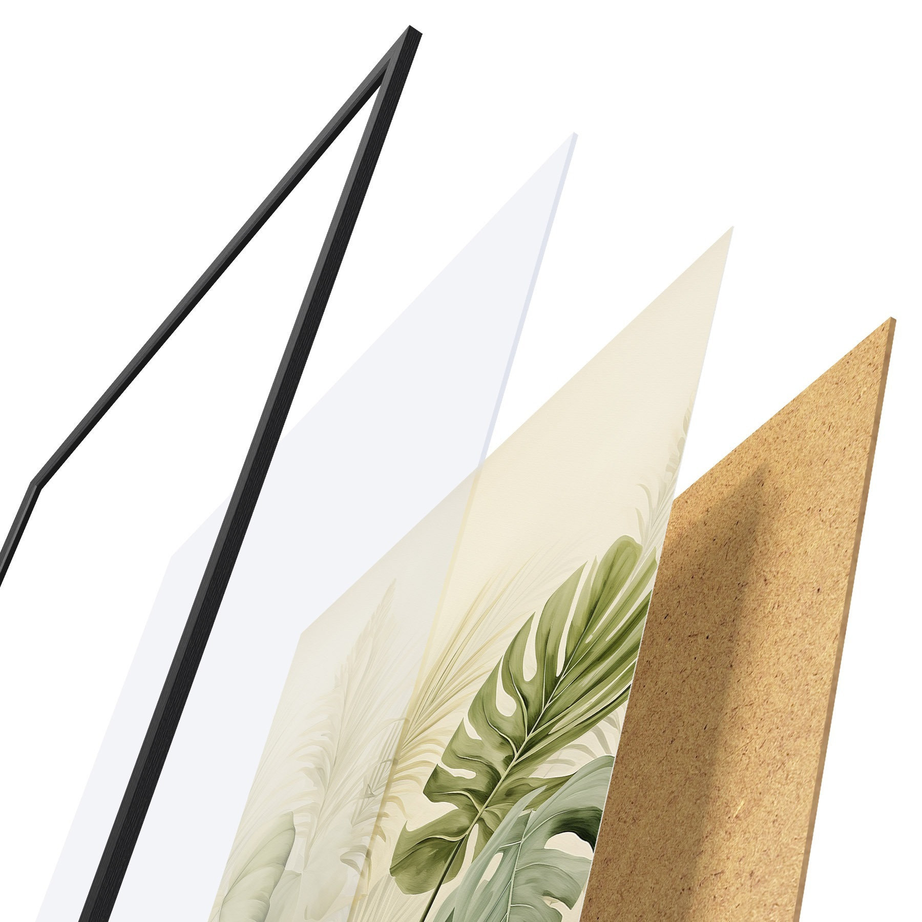 Plakatą sudaro rėmas, pleksiklas, atspausdintas vaizdas ir medžio drožlių plokštės pagrindas. Plakatą galima iš karto pakabinti ant sienos dėl kitoje pusėje esančių laikiklių.