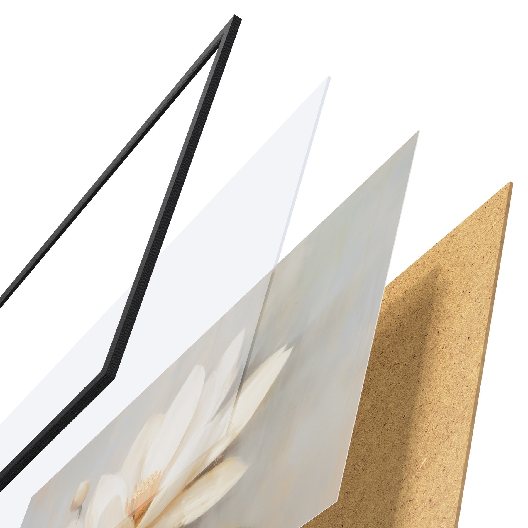 Plakatą sudaro rėmas, pleksiklas, atspausdintas vaizdas ir medžio drožlių plokštės pagrindas. Plakatą galima iš karto pakabinti ant sienos dėl kitoje pusėje esančių laikiklių.