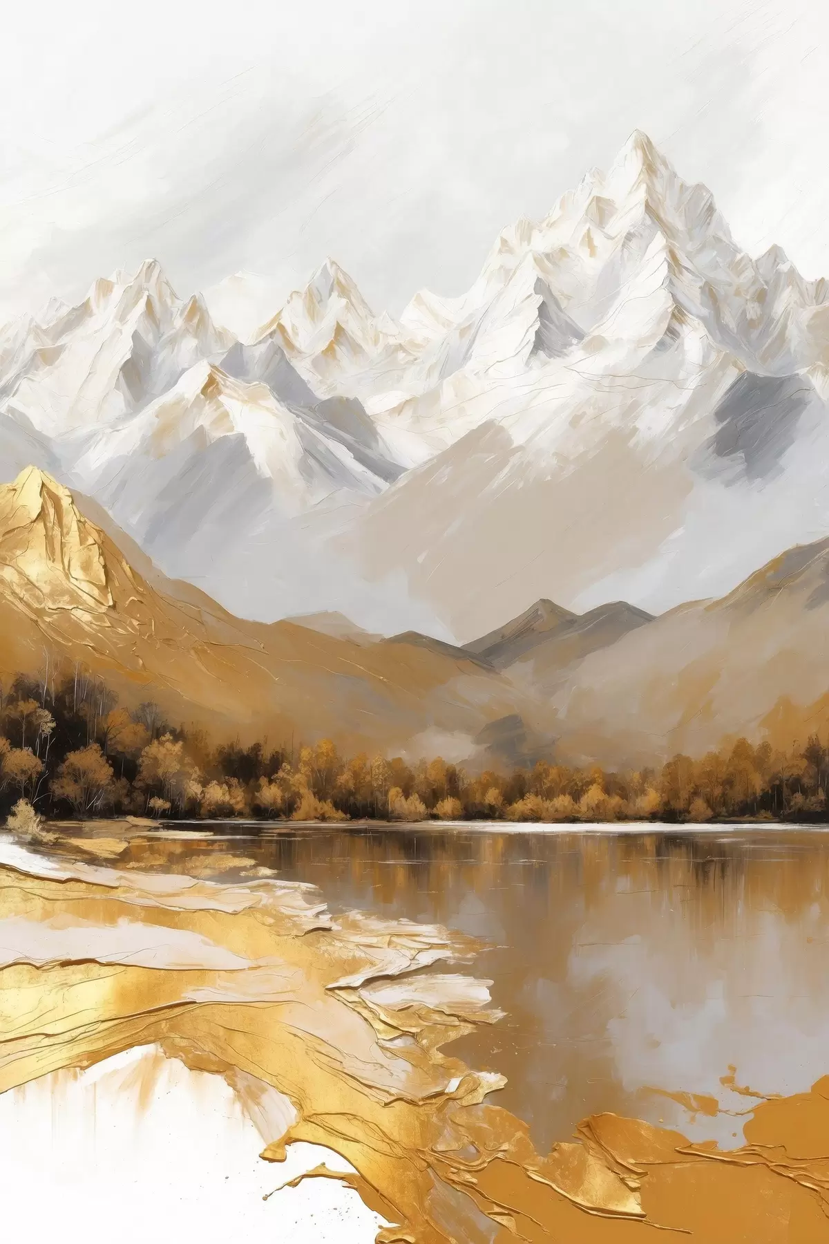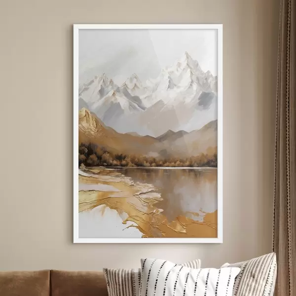 Plakatas Kalnų kraštovaizdis su ežeru ir medžiais f45620