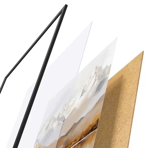 Plakatą sudaro rėmas, pleksiklas, atspausdintas vaizdas ir medžio drožlių plokštės pagrindas. Plakatą galima iš karto pakabinti ant sienos dėl kitoje pusėje esančių laikiklių.