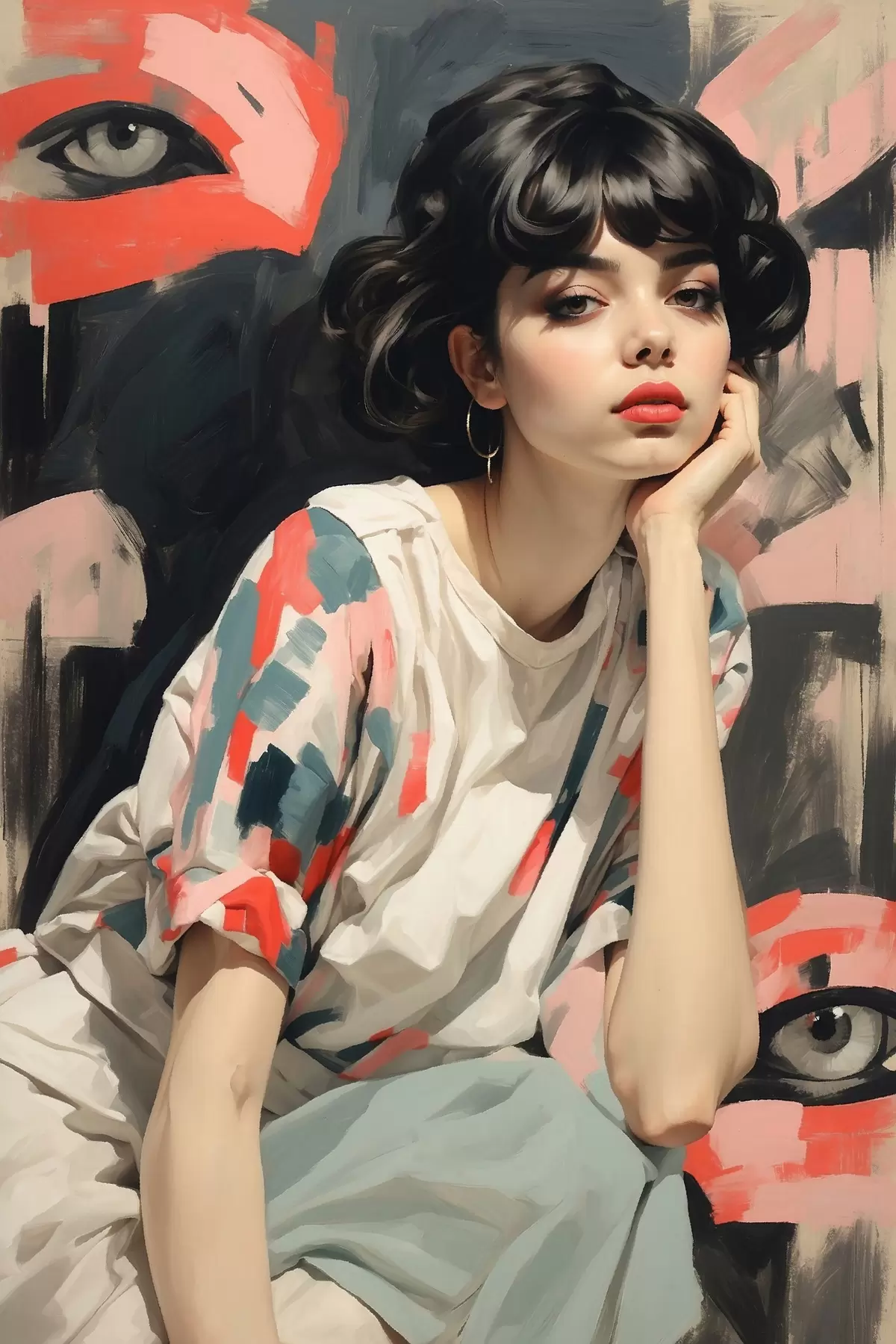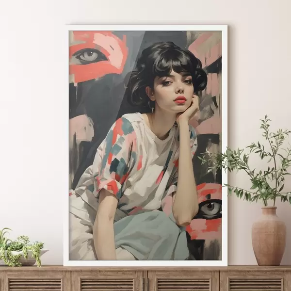 Plakatas Mergaitės portretas fone su akimis ir abstrakčiais potėpiais f45623