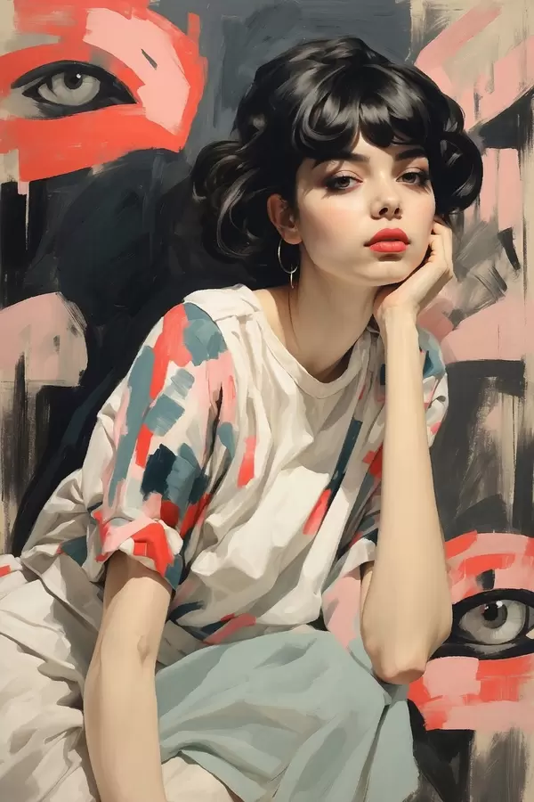 Plakatas Mergaitės portretas fone su akimis ir abstrakčiais potėpiais f45623