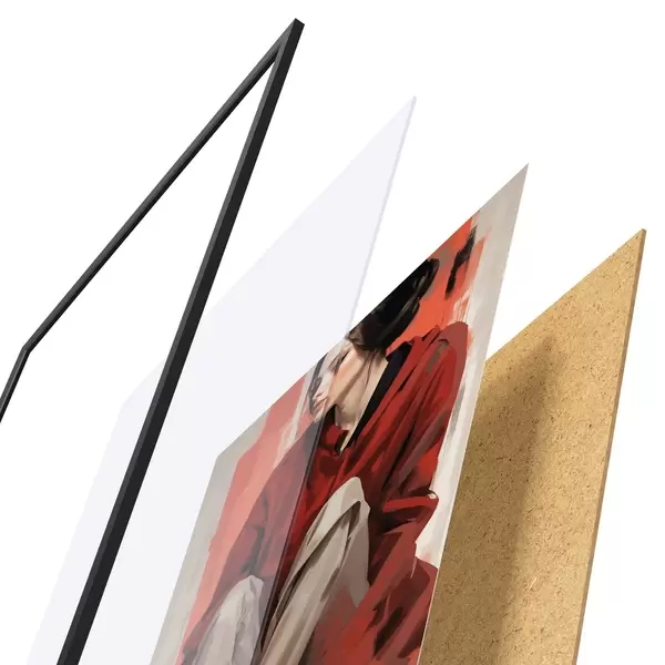 Plakatą sudaro rėmas, pleksiklas, atspausdintas vaizdas ir medžio drožlių plokštės pagrindas. Plakatą galima iš karto pakabinti ant sienos dėl kitoje pusėje esančių laikiklių.