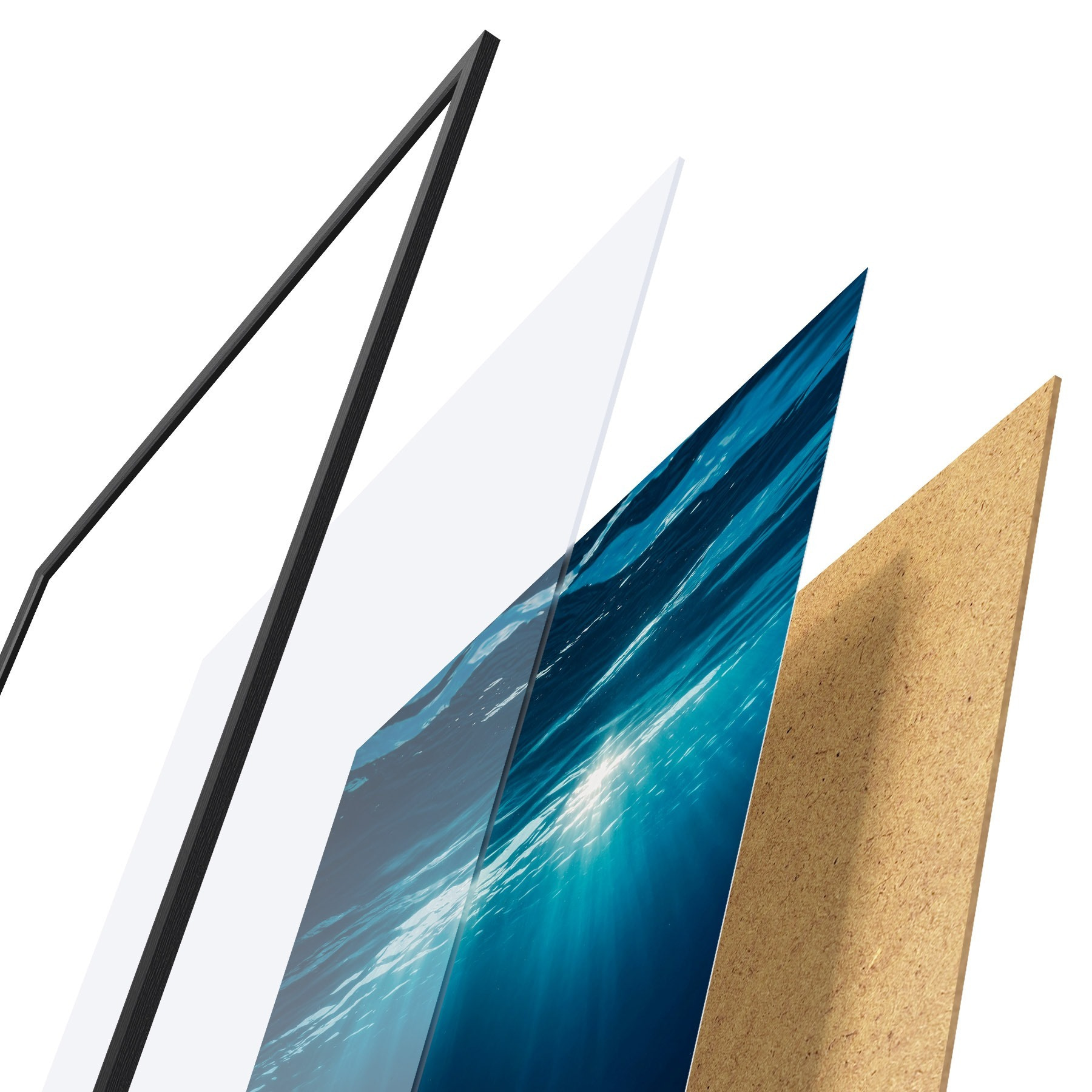 Plakatą sudaro rėmas, pleksiklas, atspausdintas vaizdas ir medžio drožlių plokštės pagrindas. Plakatą galima iš karto pakabinti ant sienos dėl kitoje pusėje esančių laikiklių.