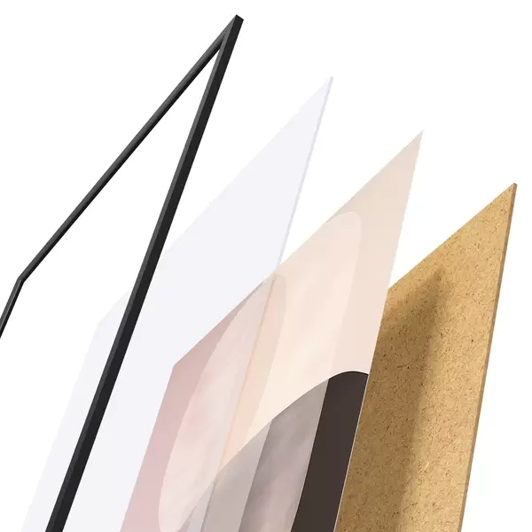 Plakatą sudaro rėmas, pleksiklas, atspausdintas vaizdas ir medžio drožlių plokštės pagrindas. Plakatą galima iš karto pakabinti ant sienos dėl kitoje pusėje esančių laikiklių.