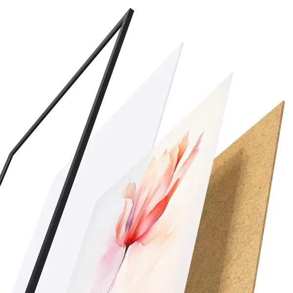 Plakatą sudaro rėmas, pleksiklas, atspausdintas vaizdas ir medžio drožlių plokštės pagrindas. Plakatą galima iš karto pakabinti ant sienos dėl kitoje pusėje esančių laikiklių.