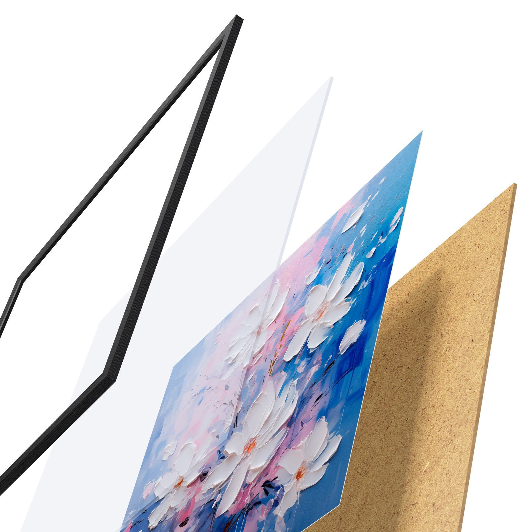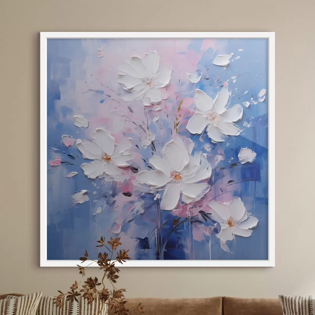 Plakatas Tūrinės gėlės mėlyname fone impasto stiliumi f45648