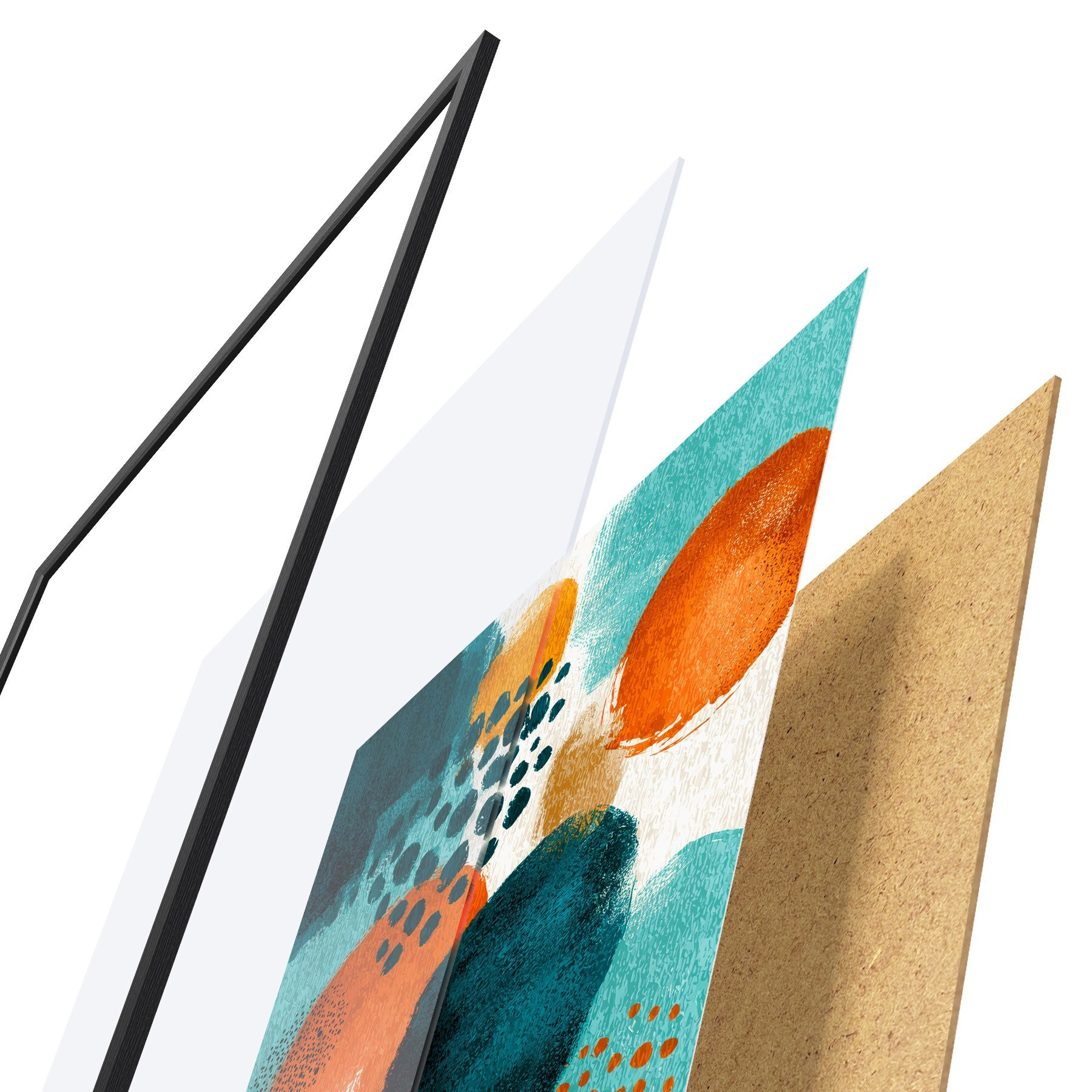 Plakatą sudaro rėmas, pleksiklas, atspausdintas vaizdas ir medžio drožlių plokštės pagrindas. Plakatą galima iš karto pakabinti ant sienos dėl kitoje pusėje esančių laikiklių.