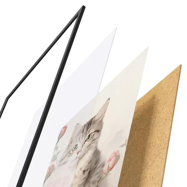 Plakatą sudaro rėmas, pleksiklas, atspausdintas vaizdas ir medžio drožlių plokštės pagrindas. Plakatą galima iš karto pakabinti ant sienos dėl kitoje pusėje esančių laikiklių.