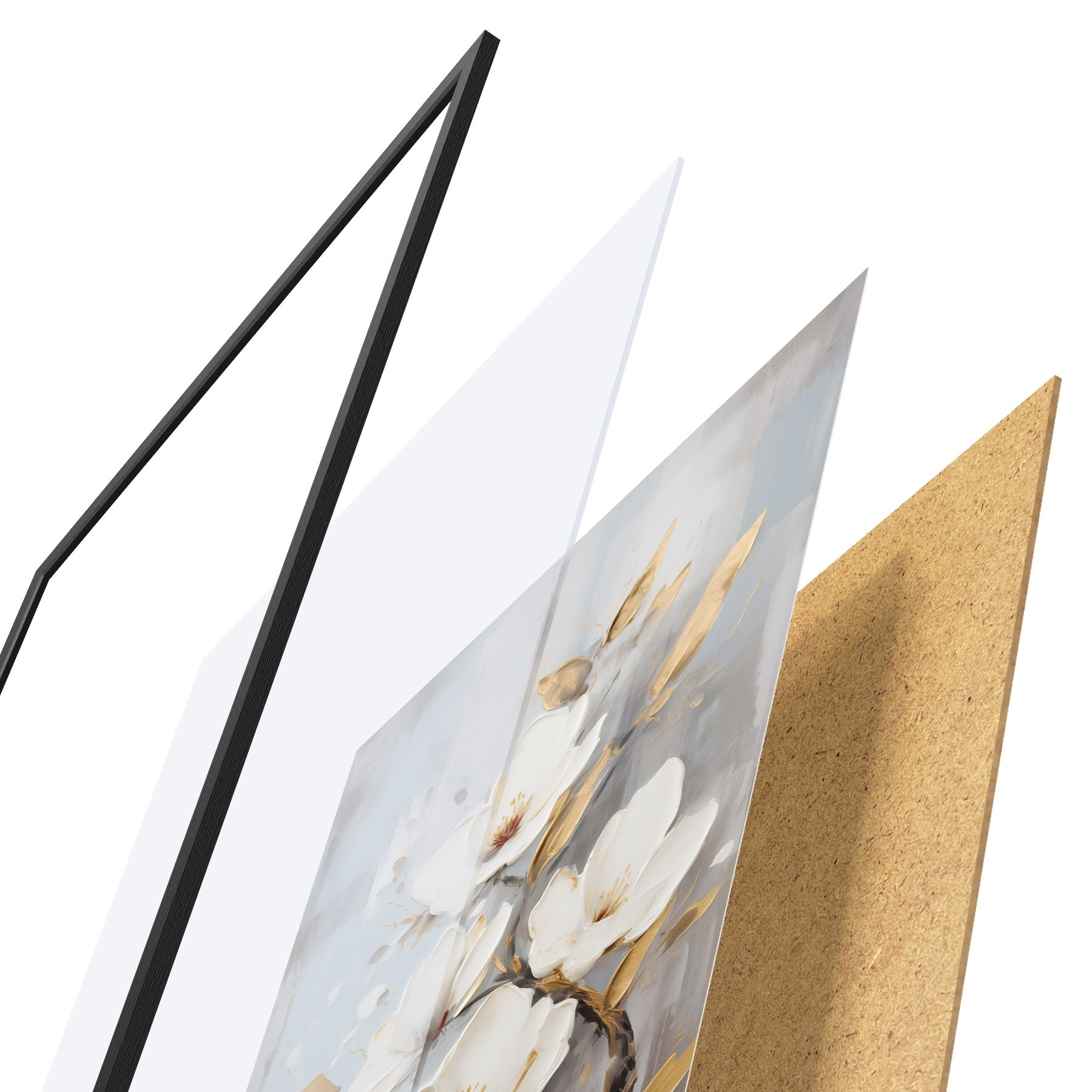 Plakatą sudaro rėmas, pleksiklas, atspausdintas vaizdas ir medžio drožlių plokštės pagrindas. Plakatą galima iš karto pakabinti ant sienos dėl kitoje pusėje esančių laikiklių.