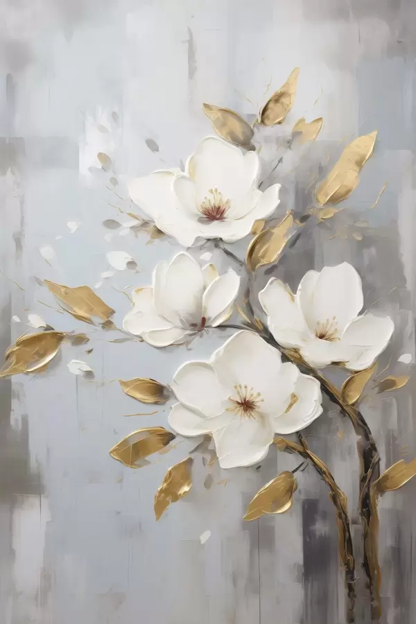 Plakatas Šaka su baltais žiedais ir geltonai oranžiniais lapais f45692