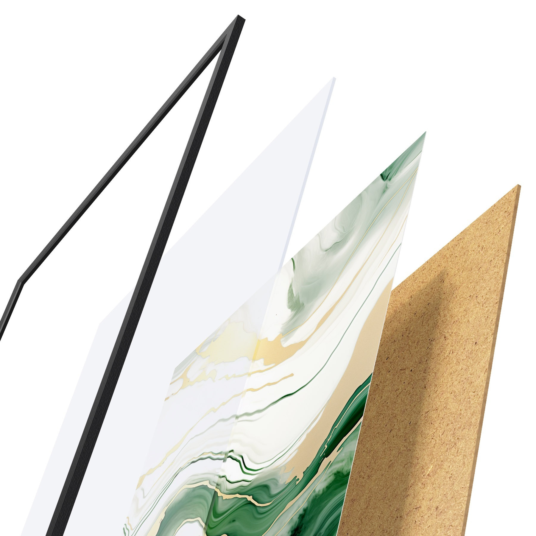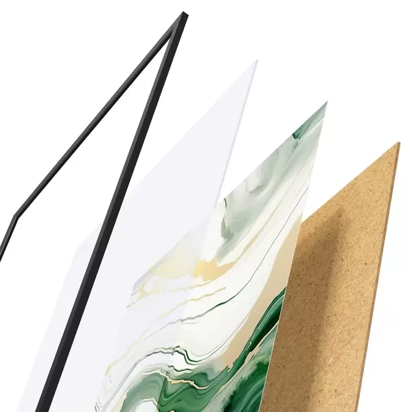 Plakatą sudaro rėmas, pleksiklas, atspausdintas vaizdas ir medžio drožlių plokštės pagrindas. Plakatą galima iš karto pakabinti ant sienos dėl kitoje pusėje esančių laikiklių.
