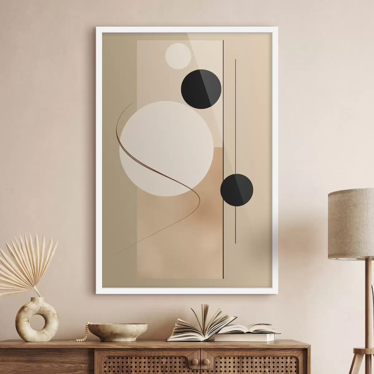 Plakatas Minimalistiniai abstraktūs apskritimai smėlio spalvos fone f45699