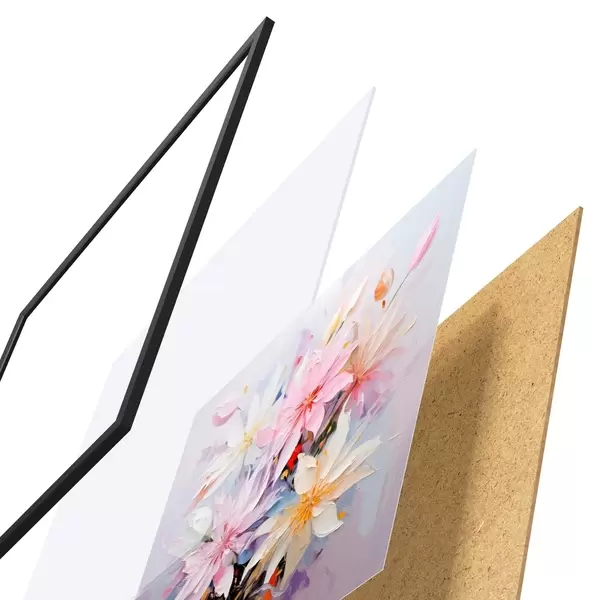 Plakatą sudaro rėmas, pleksiklas, atspausdintas vaizdas ir medžio drožlių plokštės pagrindas. Plakatą galima iš karto pakabinti ant sienos dėl kitoje pusėje esančių laikiklių.
