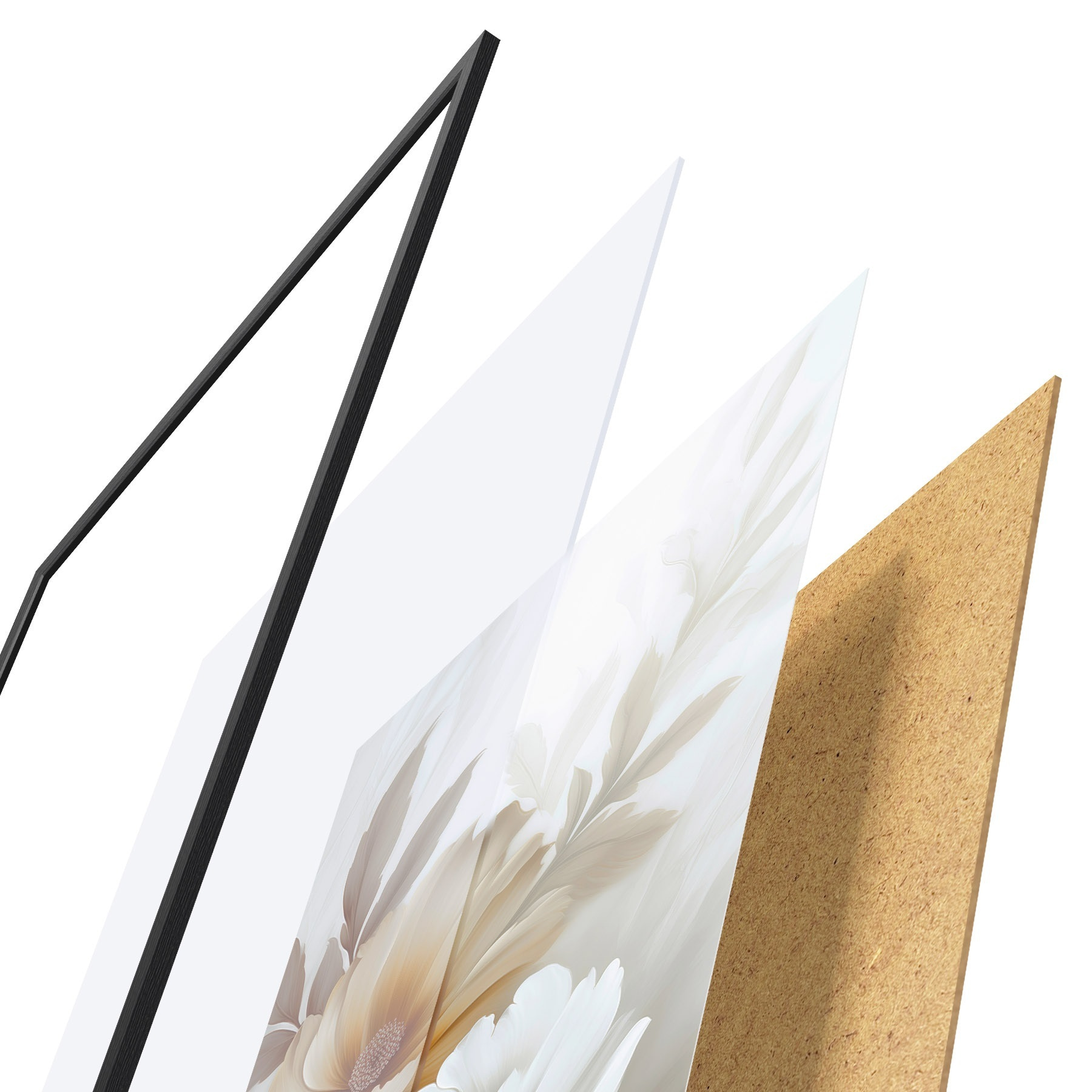 Plakatą sudaro rėmas, pleksiklas, atspausdintas vaizdas ir medžio drožlių plokštės pagrindas. Plakatą galima iš karto pakabinti ant sienos dėl kitoje pusėje esančių laikiklių.