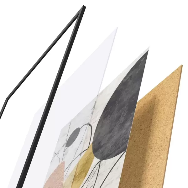 Plakatą sudaro rėmas, pleksiklas, atspausdintas vaizdas ir medžio drožlių plokštės pagrindas. Plakatą galima iš karto pakabinti ant sienos dėl kitoje pusėje esančių laikiklių.